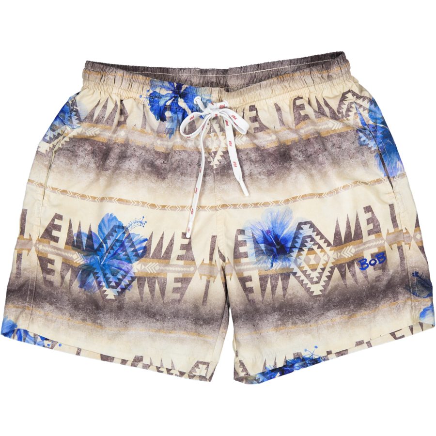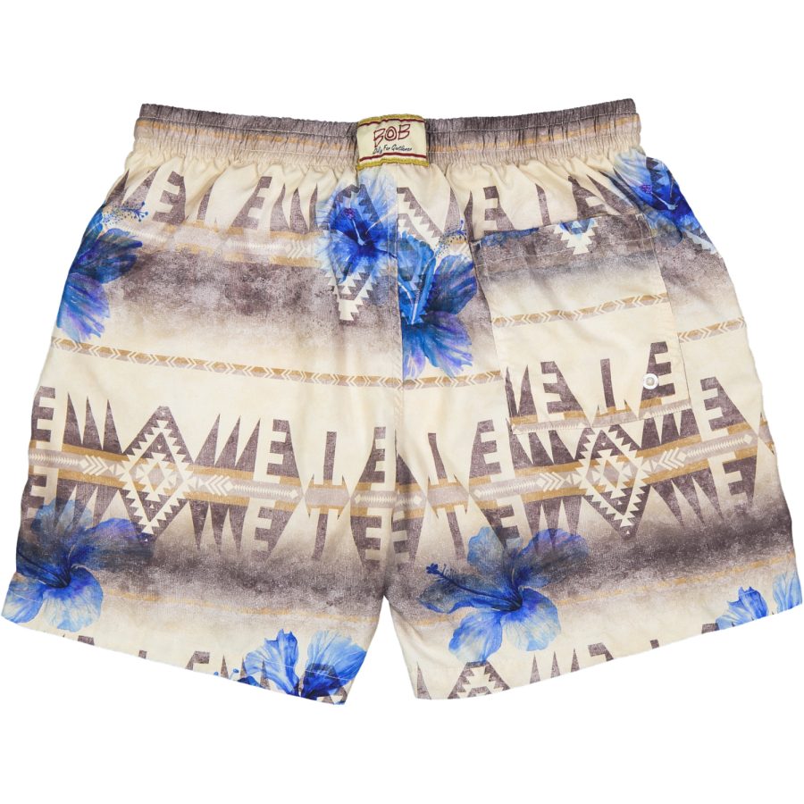 Costume a pantaloncino lunghezza sopra al ginocchio realizzato in poliestere ultra leggero con tasche laterali modello chino e taschino posteriori applicato con velcro di chiusura. Retina interna di colore bianco,elastico in vita e cordino di chiusura in cotone con finalini in plastica. Logo Bob applicato sul dietro.