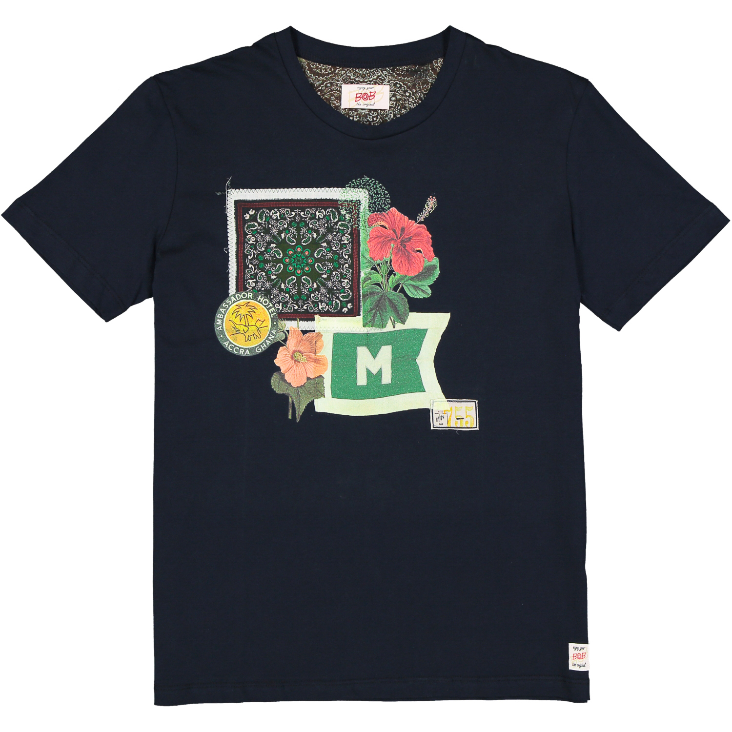 Maglietta mezza manica girocollo con applicazioni centrale in tipico stile Bob.
