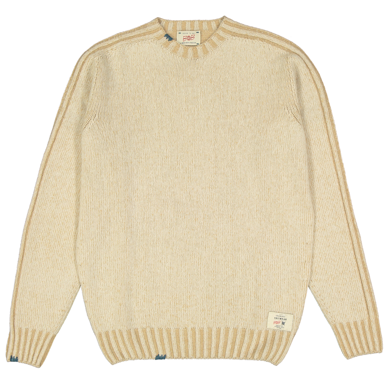 Maglione girocollo con lavorazione bicolore effetto vanisè realizzato in pura lana. Collo, polsini e fondo realizzati con lavorazione a costa.