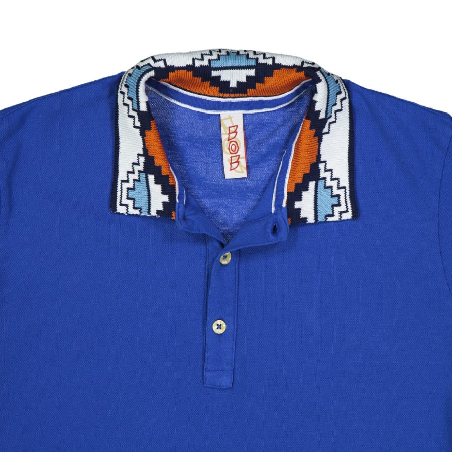 Polo 3 bottoncini mezza manica realizzata in cotone piquet con colletto a lavorazione uncinetto multicolor. Spacchetto con fettuccia interna e logo applicato sul fondo