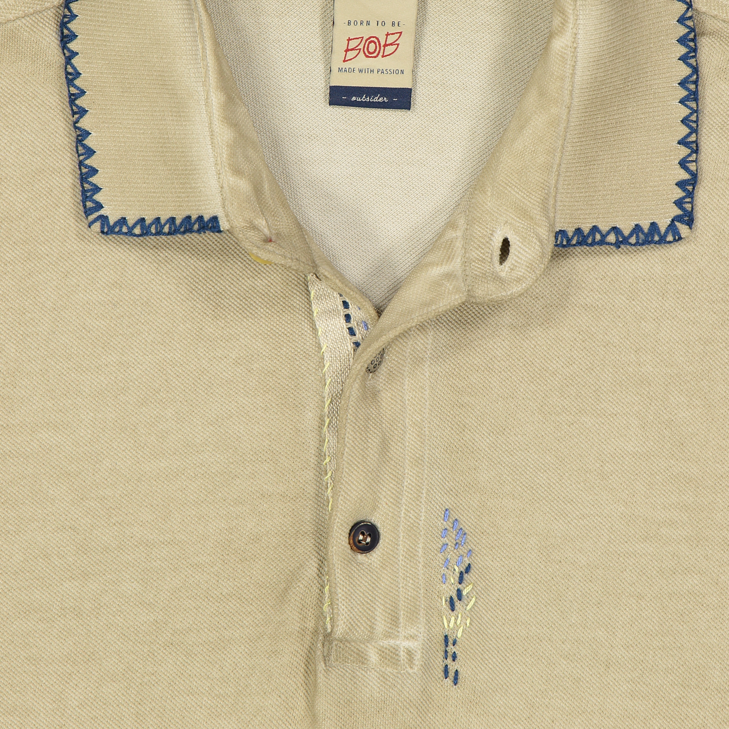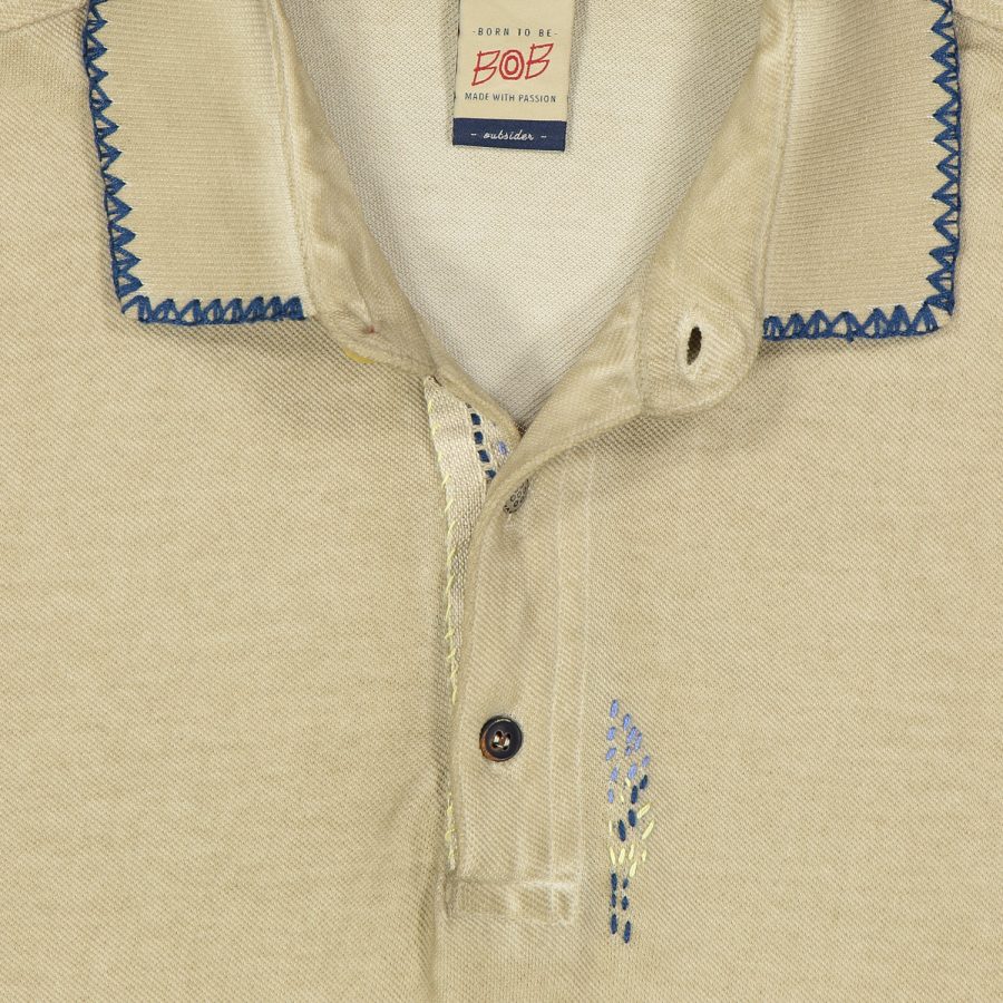 Polo 3 bottoncini mezza manica realizzata in cotone piquet dal peso leggero con ricami, applicazioni e impunture realizzate a mano in stile Bob.