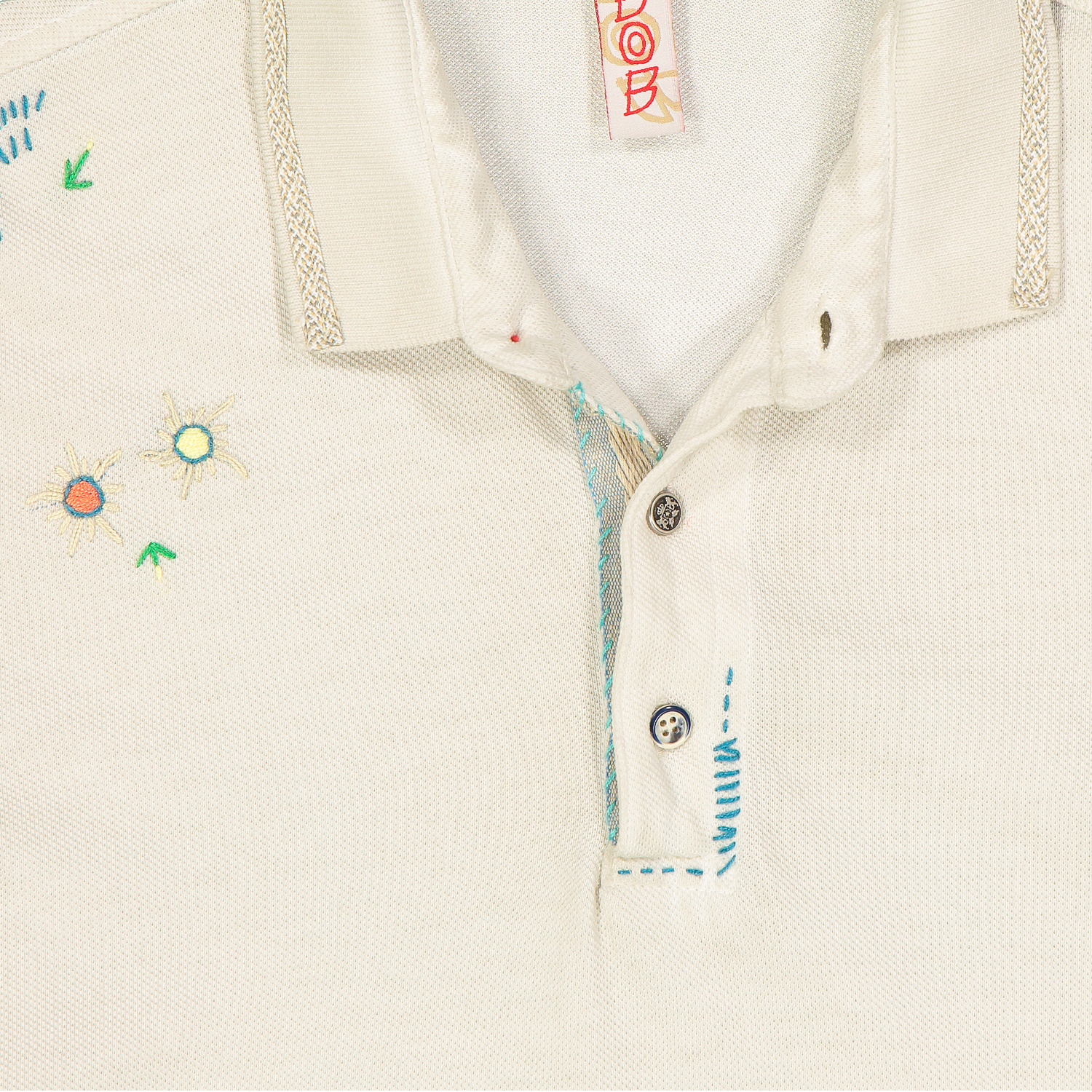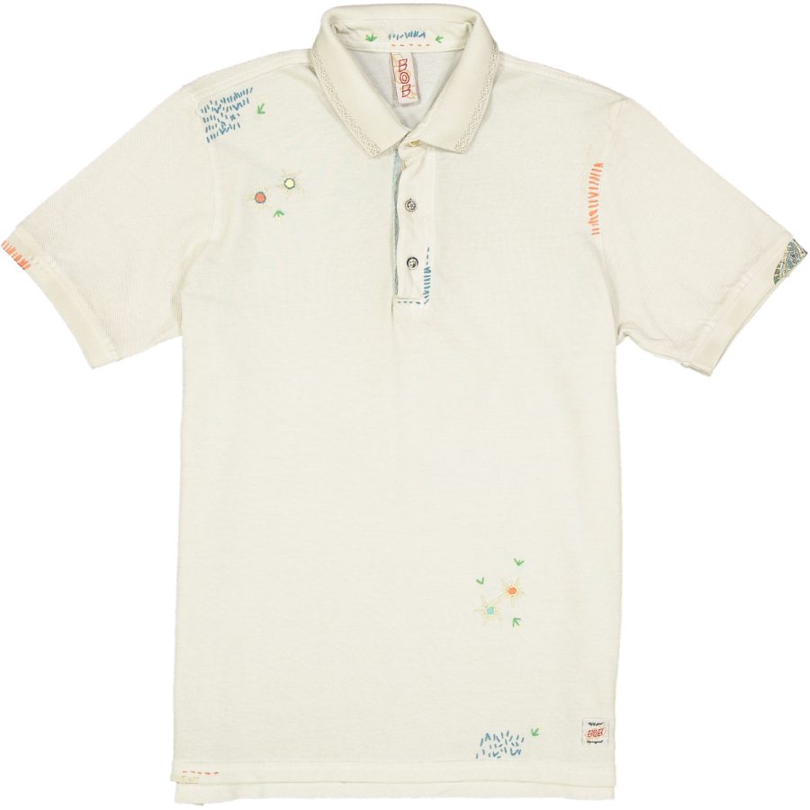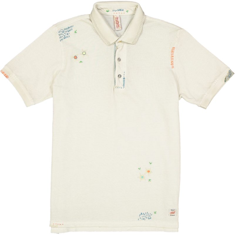 Polo 3 bottoncini mezza manica realizzata in cotone piquet dal peso leggero con ricami, applicazioni e impunture realizzate a mano in stile Bob.