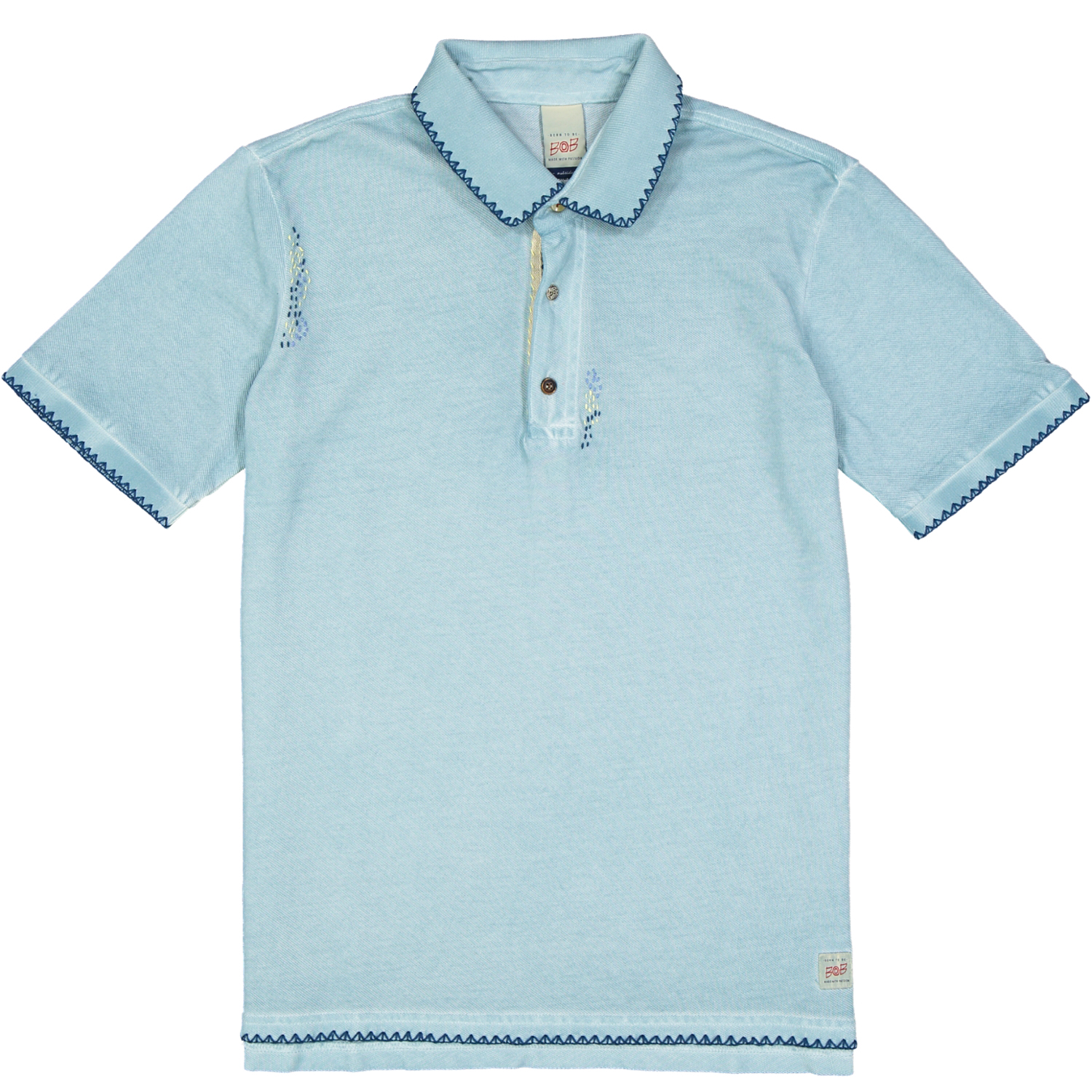 Polo 3 bottoncini mezza manica realizzata in cotone piquet dal peso leggero con ricami, applicazioni e impunture realizzate a mano in stile Bob.