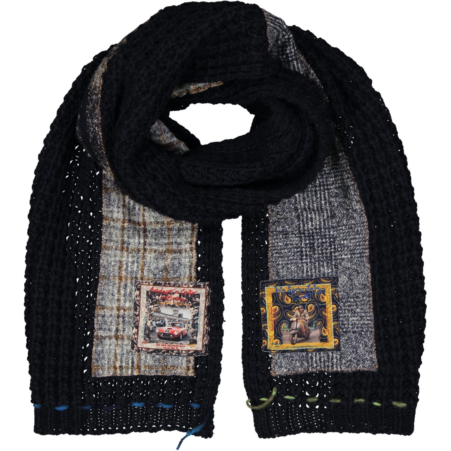 COLORE: inserti stampa multicolor su base sciarpa blu