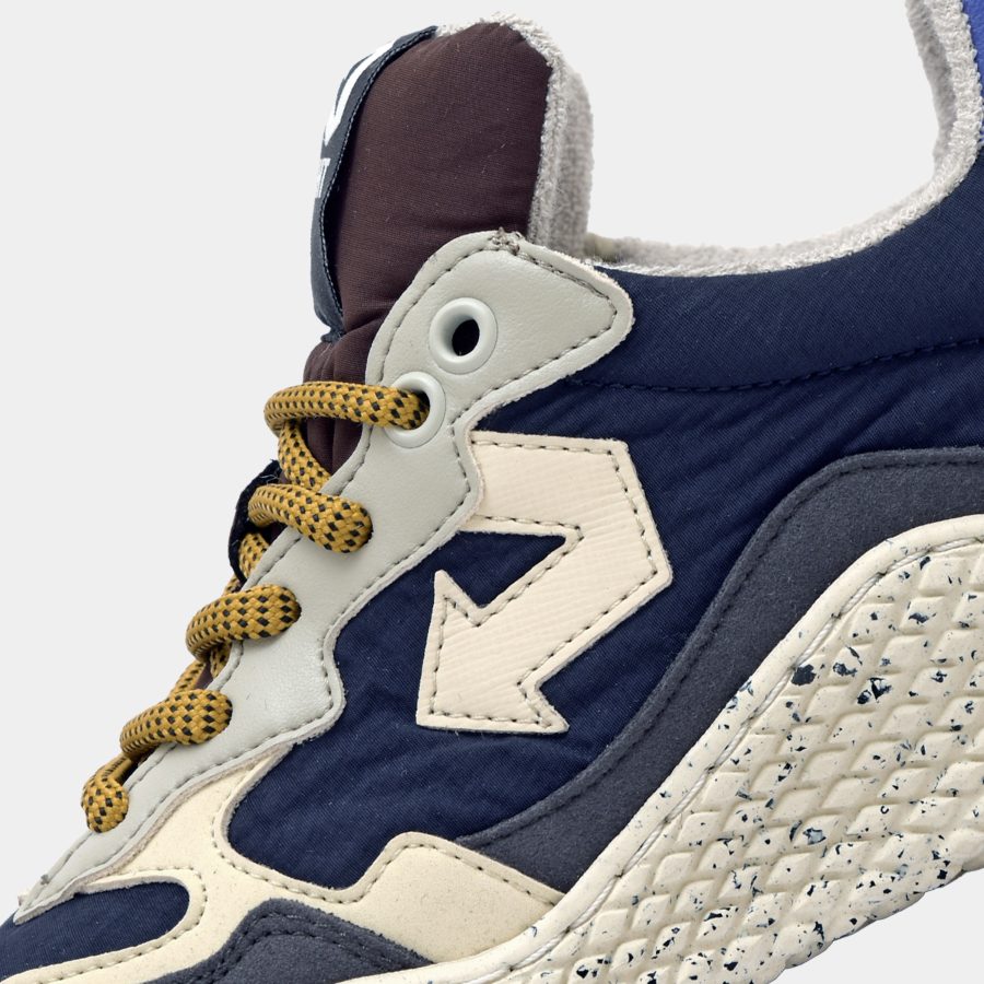 Sneakers modello Hana eco-friendly. La tomaia è interamente realizzata con materiali riciclati, includendo sottoprodotti non commestibili dell’industria alimentare come bucce di mela, vinacce, mais e micelio. I componenti tessili sono ottenuti da materiali tecnici derivati da plastica riciclata.