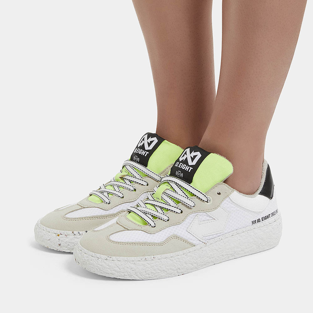 Sneakers modello Uriduri eco-friendly. Una palette che unisce bianco, beige e tocchi di giallo definisce un’estetica equilibrata e contemporanea. La freccia bianca crea un contrasto grafico deciso, mentre il gioco di materiali e volumi regala alla silhouette un carattere moderno e distintivo. Una versione versatile, pensata per chi cerca colore in chiave essenziale. Realizzata con poliestere riciclato idrorepellente, Uppeal (mela) e BioVeg (mais), garantisce impermeabilità e un basso impatto ambientale. Il sottopiede antibatterico e antiodore assicura comfort e freschezza per tutto il giorno.