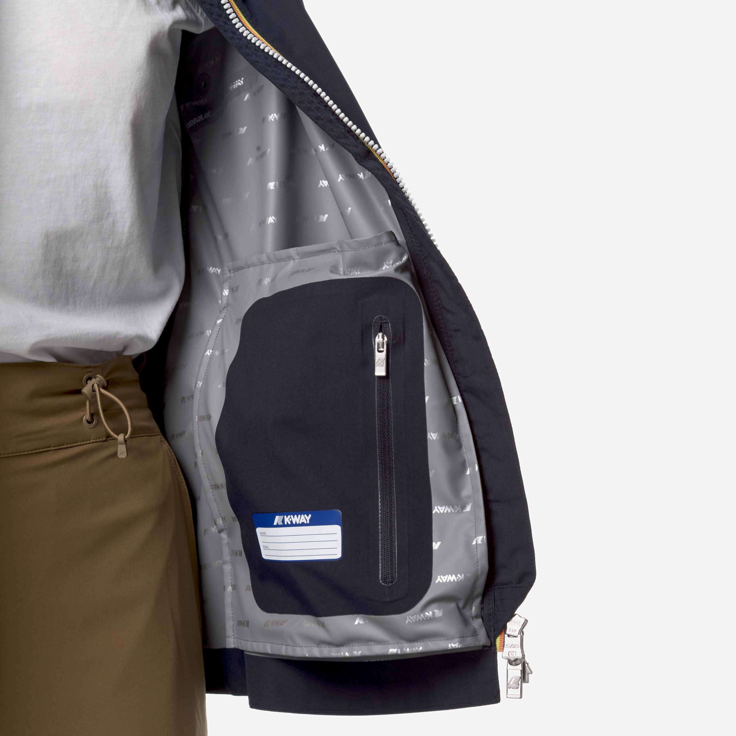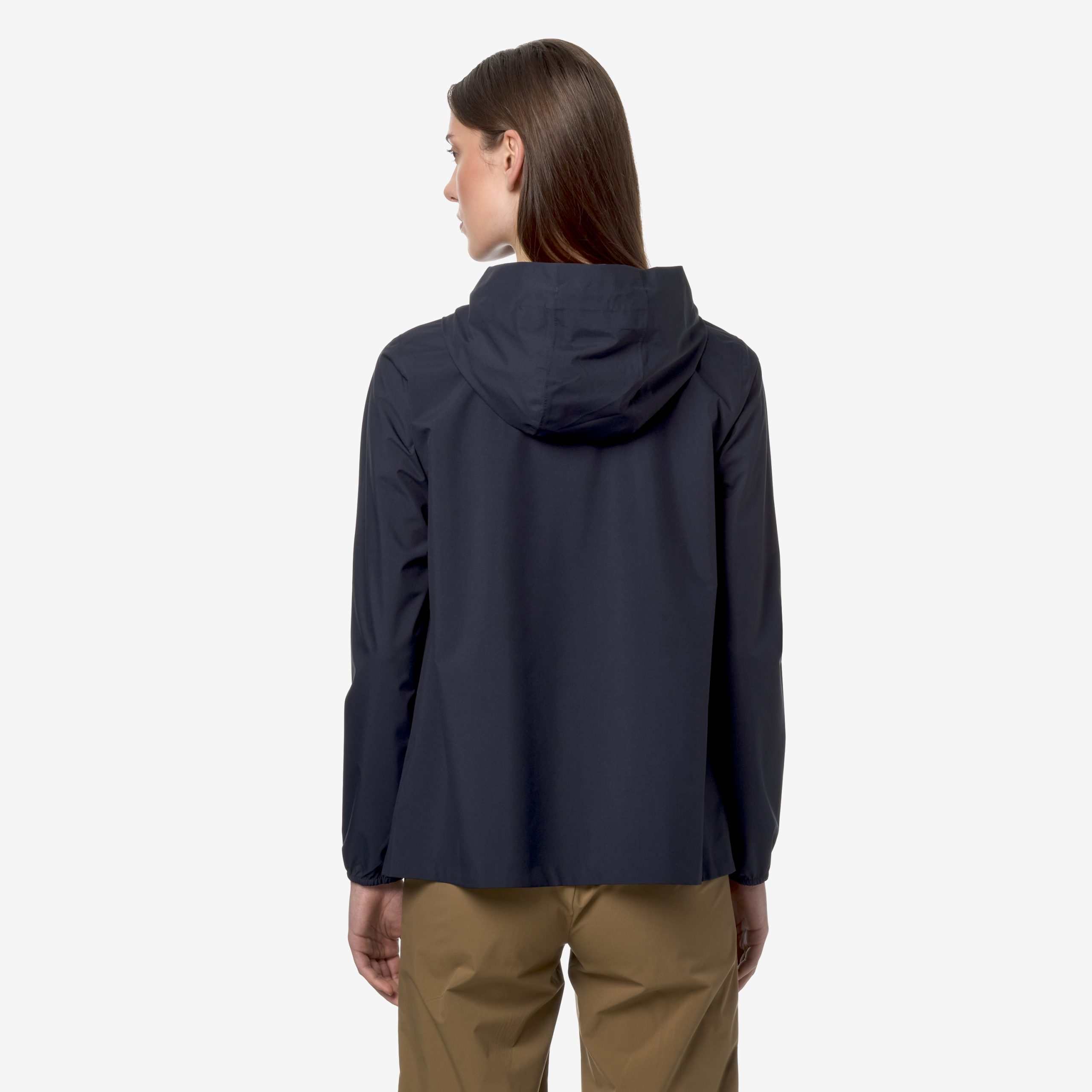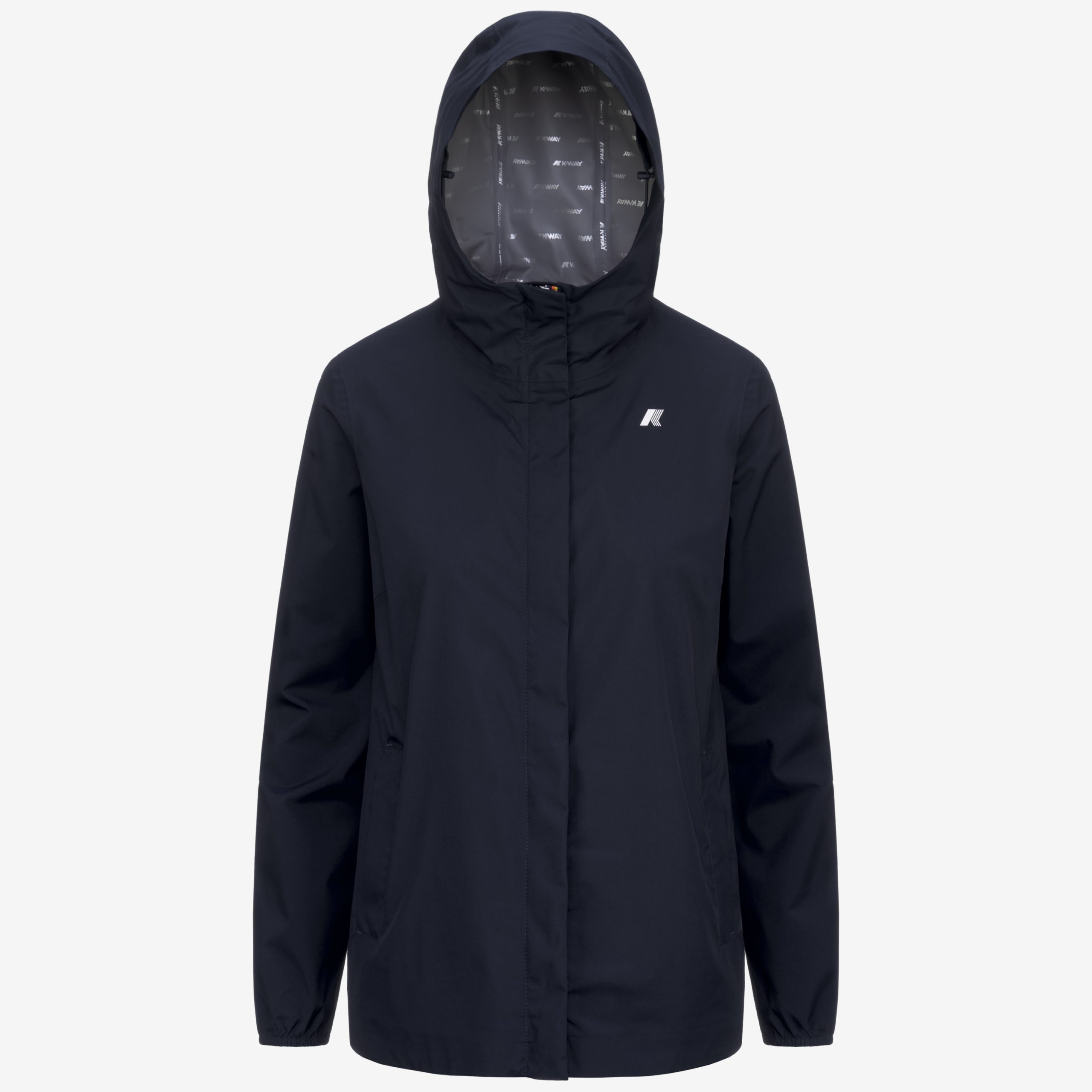 Giacca lunghezza media al fianco con cappuccio modello Marguerite Stretch Dot realizzato in tessuto tecnico elasticizzato impermeabile fino a 5000 colonne d’acqua, idrorepellente, antivento e traspirante segue la silhouette e protegge al tempo stesso. L’interno combina stile e funzinalità perchè è rifinito con una membrana isolante e il lettering K-Way stampato all over in tonalità argento. Altre caratteristiche sono: cuciture termonastrate, cappuccio regolabile con corda elastica, chiusura con zip coperta, polsi con elastico, 2 tasche con zip, logo applicato stampato colore bianco.