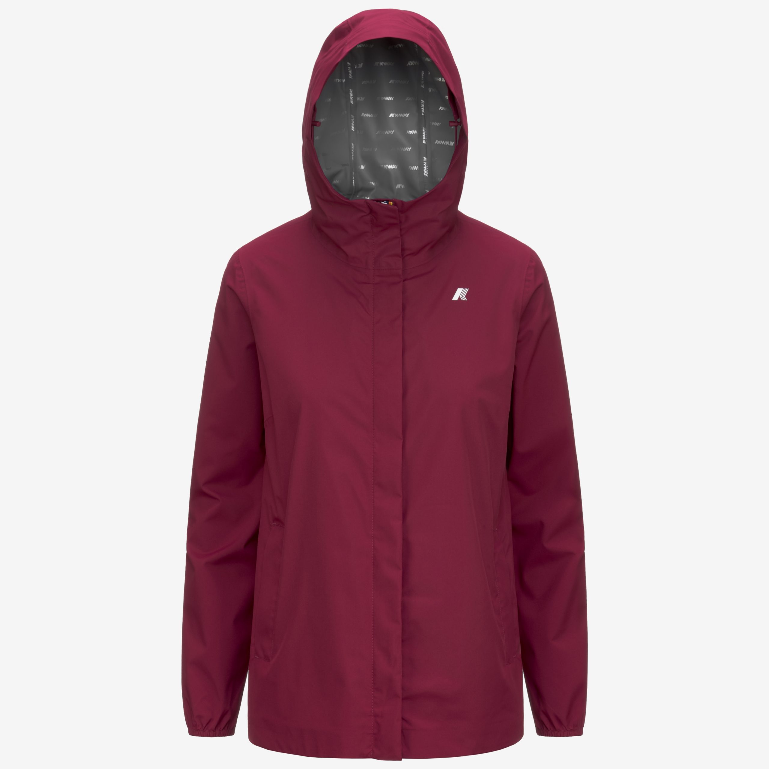 Giacca lunghezza media al fianco con cappuccio modello fisso Marguerite Stretch Dot realizzato in tessuto tecnico elasticizzato impermeabile fino a 5000 colonne d’acqua, idrorepellente, antivento e traspirante segue la silhouette e protegge al tempo stesso. L’interno combina stile e funzinalità perchè è rifinito con una membrana isolante e il lettering K-Way stampato all over in tonalità argento. Altre caratteristiche sono: cuciture termonastrate, cappuccio regolabile con corda elastica, chiusura con zip coperta, polsi con elastico, 2 tasche con zip, logo applicato stampato colore bianco.